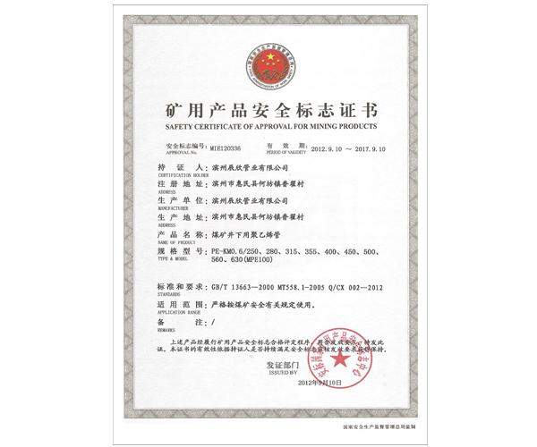 矿用产品安全标志证书
